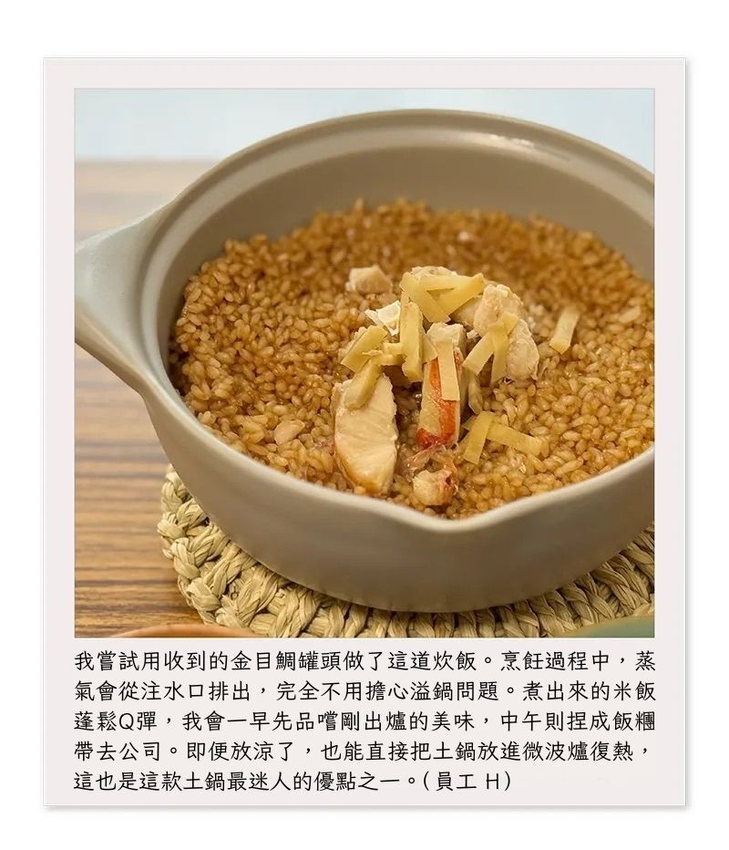 用土鍋煮出來的米飯,總有一種特殊的儀式感。它的導熱特性能煮出粒粒分明的飽滿感,不僅現炊時香氣四溢,即便放涼後米飯依然保有極佳的Q度與口感。