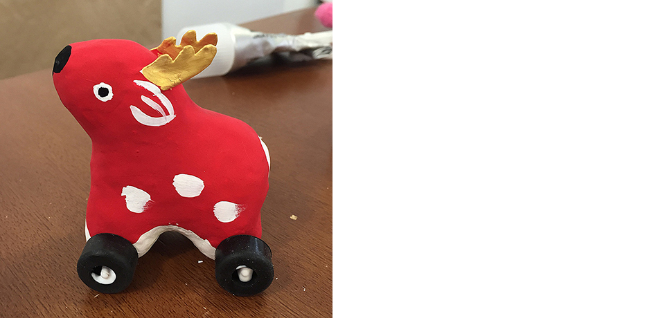這麼一想,從漫長的歷史角度來看,我們製作的小鹿玩具車還不能算是真正的鄉土玩具。它現在正處於起步階段,如同新生小鹿一般,緩步向前。
