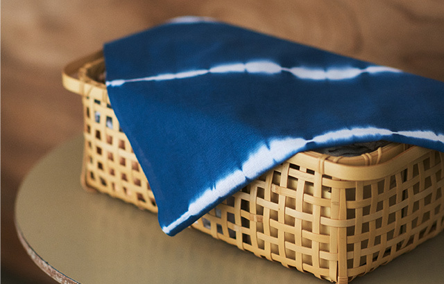 這款手拭巾採用「紮染」技法染製。我們選用專為手拭巾設計,名為「文」的布料,觸感蓬鬆厚實,具優異的透氣性與吸水性。