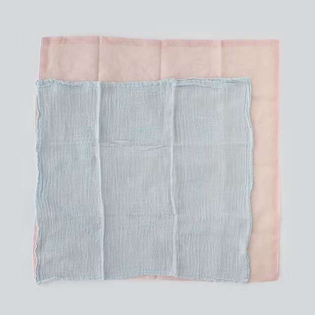 新購買的方巾上皆有一層漿糊,使用前請先用溫水清洗去除。也可以浸泡溫熱水中約20~30分鐘,加速方巾軟化。