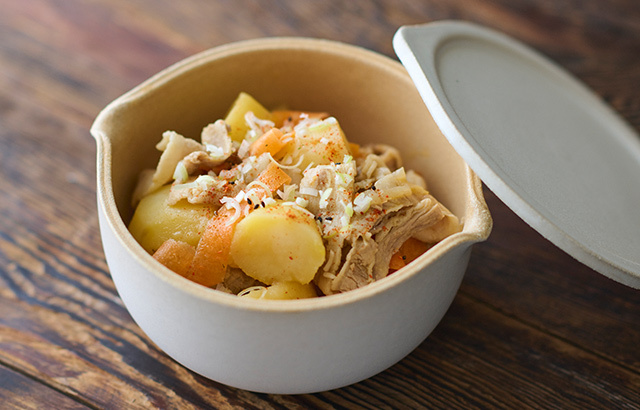 這款蒸碗不僅能輕鬆蒸煮蔬菜,只要發揮巧思,更能成為您日常料理的好幫手!例如,將馬鈴薯、紅蘿蔔、豬肉放入碗中加熱,再加入調味料攪拌均勻後二次微波,一道美味的日式燉肉就能輕鬆上桌,省時又省力。