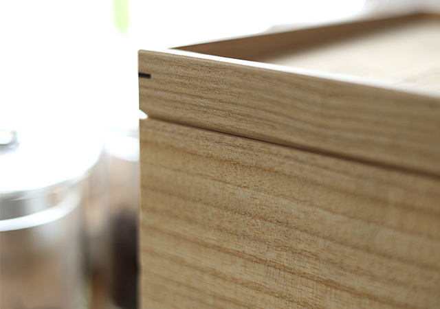 充分利用桐木的特性──優秀的調濕能力、防蟲的單寧、泡桐素和芝麻素等成分,以及渾然天成的風貌,製作了這款能於廚房中活躍使用的食品保存箱。在溼度高的日本,桐木自古以來便受到高度重視,其優越的調濕作用使得桐箱內部能夠維持穩定濕度,非常適合用於食品保存。
